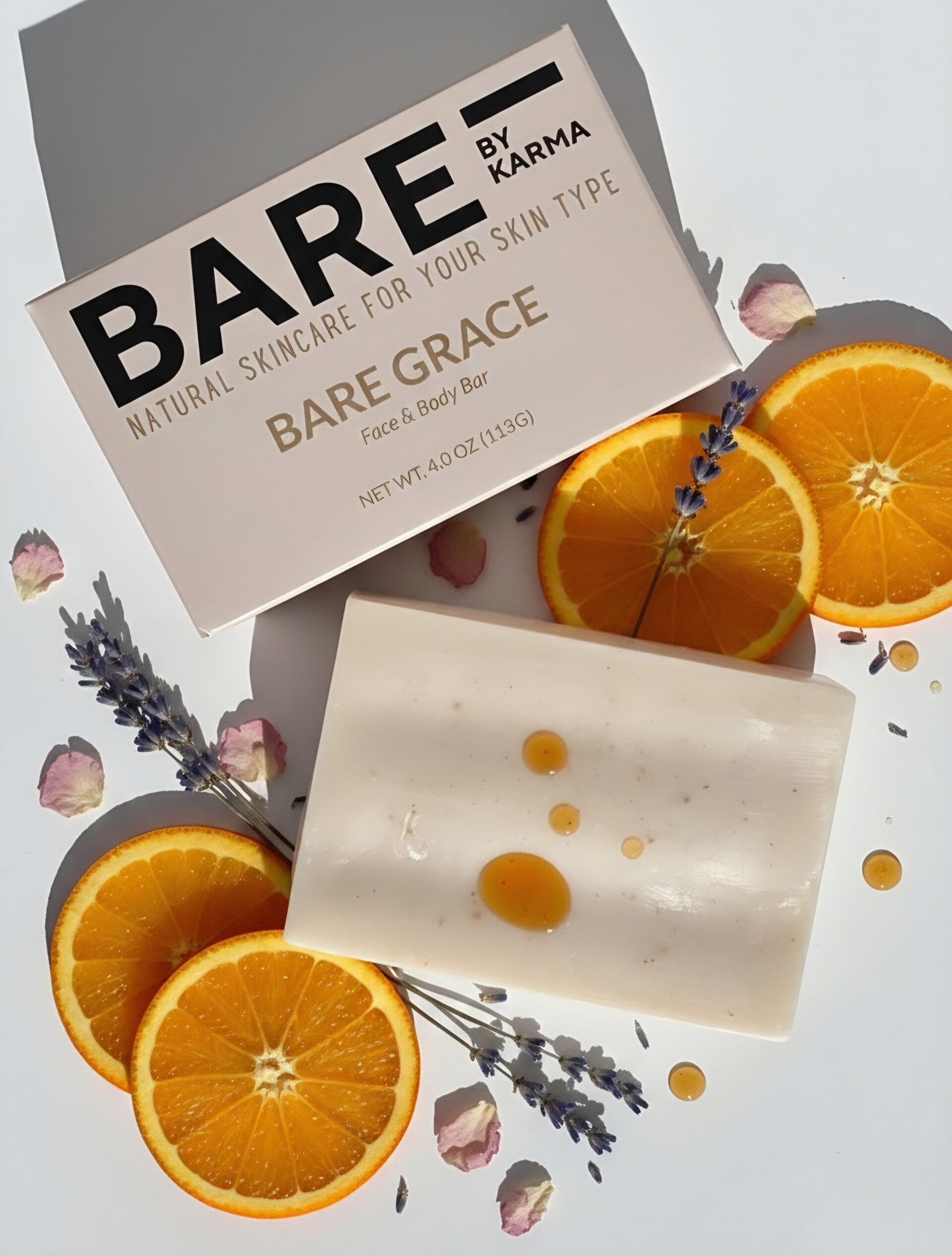 Gracefully formulated for mature skin, yet gentle and nourishing enough for all, BARE Grace Face + Body Bar is a creamy, nutrient-rich face and body bar designed to soften, replenish, and restore luminosity from the very first use.